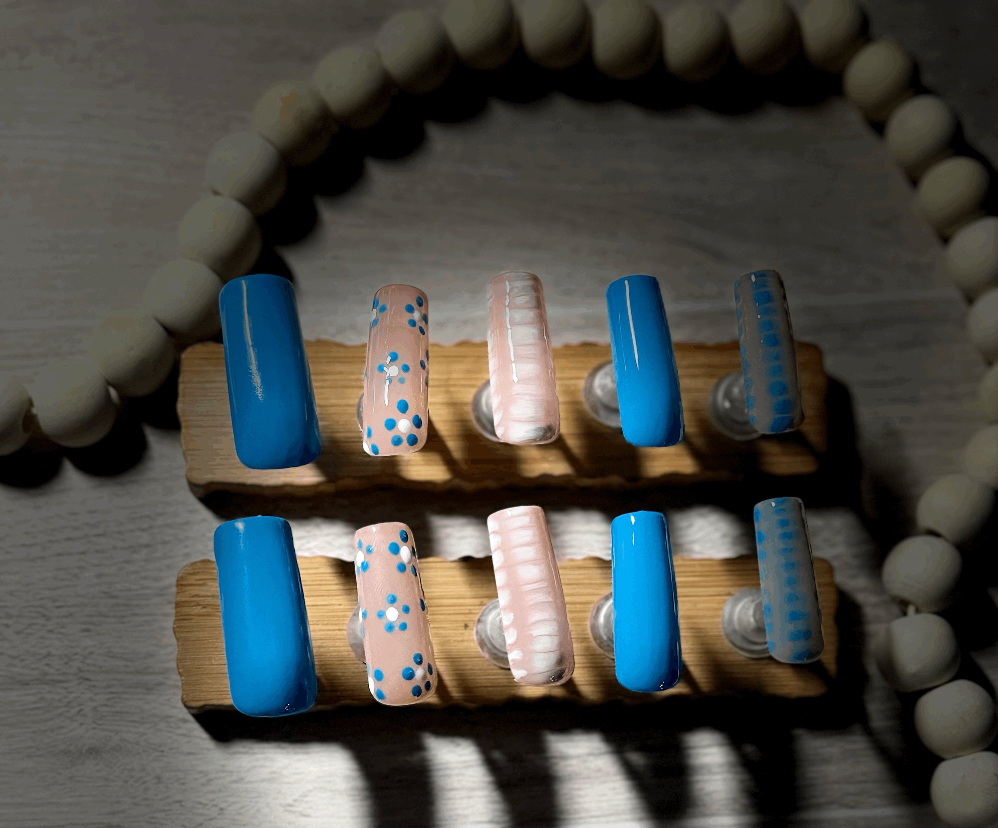 LONG SQUARE BLUE SPRING FLOWER ACRYLIC NAILS