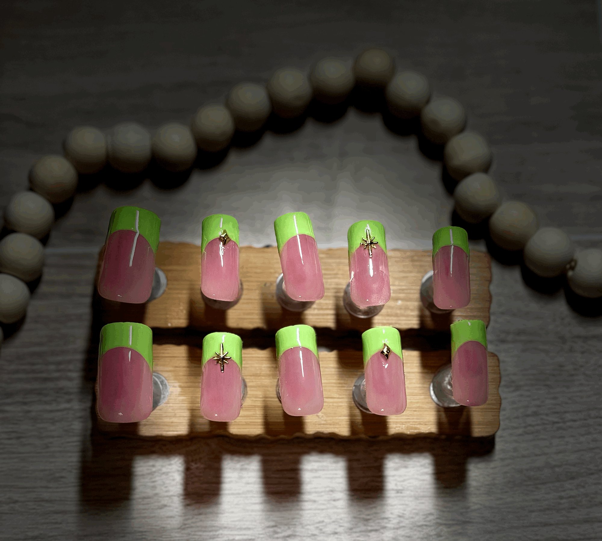 MEDIUM LENGTH SQUARE GREEN FRENCH TIP ACRYLIC NAILS